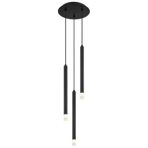 Függeszték fém fekete matt, akril szaténemzott, átlátszó, fekete PVC kábel, ø: 240mm, M: 1200mm, 3x G9 LED 4W 230V izzók nélkül