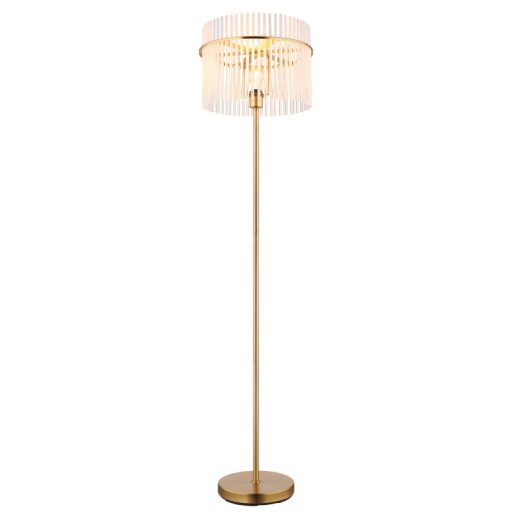 Állólámpa fém arany színű matt, fehér színű/átlátszó színátmenetes üvegrudak, fekete PVC kábel, lábpedálos kapcsoló a kábelen, ø: 380mm, M: 1520mm, kábel hossza 1800mm, 1x E27 60W 230V izzó nélkül