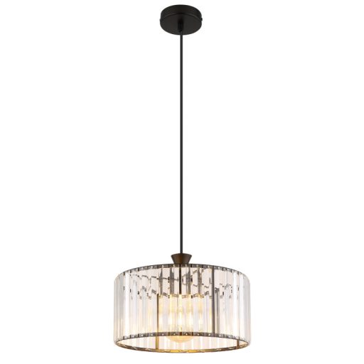 Függeszték fém fekete matt, átlátszó akril kristályok, fekete PVC kábel, ø: 310mm, M: 1200mm, 1x E27 60W 230V izzó nélkül