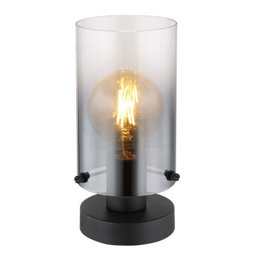 Asztali lámpa fém fekete matt, füstszínű/átlátszó színátmenetes üveg búra, fekete PVC kábel, billenőkapcsoló a kábelen, ø: 125mm, M: 263mm, kábel hossza 1500mm, 1x E27 40W 230V izzó nélkül