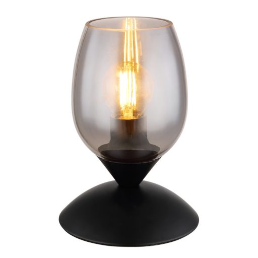 Asztali lámpa fém fekete matt, füstszínű üveg búra, fekete PVC kábel, érintő kapcsoló, ø: 125mm, M: 180mm, kábel hossza 1500mm, 1x E14 25W 230V izzó nélkül