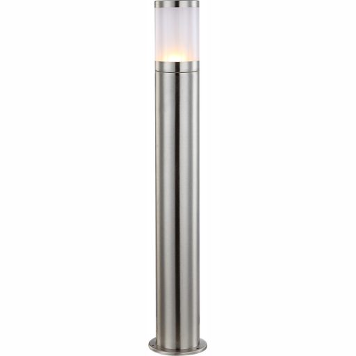 Kültéri rozsdamentes acél álló lámpa műanyag opál búrával, IP44-es védelemmel.
