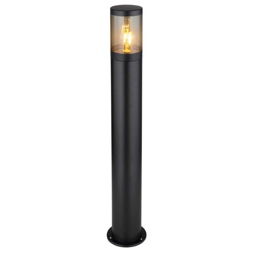Matt fekete színre festett rozsdamentes acél álló lámpa füstszínű műanyag búrával, E27-es foglalattal, IP44-es védelemmel.