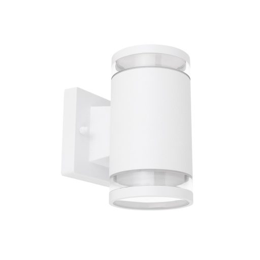 Fehér színű alumínium kültéri fali lámpa műanyag betéttel, IP44-es védelemmel. A lámpa csak LED fényforrással működtethető.