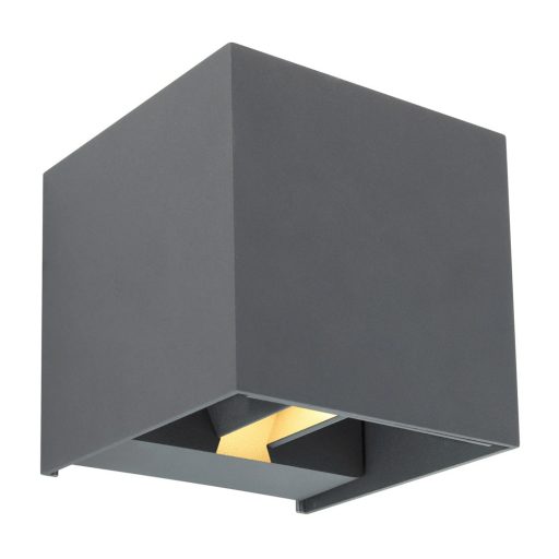 Antracit színű alumínium öntvény kültéri fali lámpa 6W meleg fehér fényű beépített LED fényforrással, IP54-es védelemmel. A lámpa felfelé és lefelé egyaránt világít, a fényterelők segítségével állítható a fénykibocsátás szöge.