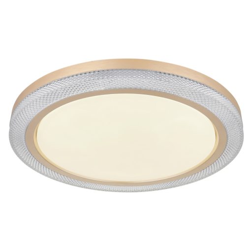 Fehér színű fém vázas mennyezeti lámpa arany keretes, kristály dekoros műanyag búrával, beépített LED fényforrással. A lámpához távirányító tartozik, mely segítségével állítható a lámpa fényereje, színhőmérséklete (2700K-6500K), színe, továbbá a lámpa memória és éjszakai fény funkcióval is rendelkezik. A lámpa képes kevert színű, úgynevezett szivárvány effektes világításra.