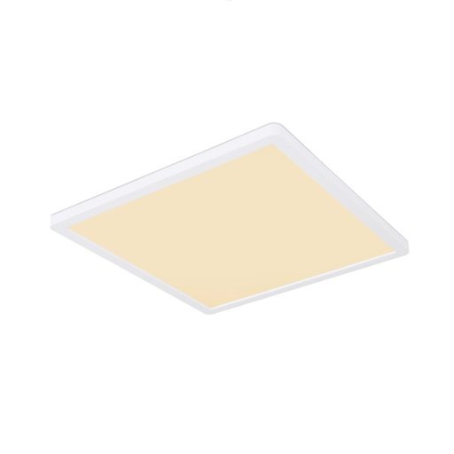 Matt fehér színű műanyag mennyezeti lámpa opálos búrával, beépített, meleg fehér fényű LED fényforrással, IP44-es védelemmel. A lámpa fényereje fali kapcsoló segítségével 10-50-100% között kapcsolható. A lámpa a mennyezet felé is világít, ami hangulatossá varázsolja.