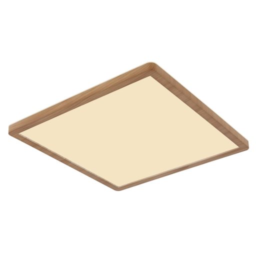 Fa és fehér színű műanyag mennyezeti lámpa beépített meleg fehér színhőmérsékletű LED fényforrással, háttér világítással, IP44-es védelemmel. A lámpa fényereje fali kapocsoló segítségével 3 lépcsőben (10,500,100%) kapcsolható.