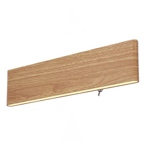 Fa kinézetű, vékony kivitelű alumínium fali lámpa alul felül opálos akril betéttel, 12W meleg fehér fényű beépített LED fényforrással, lámpatesten lévő kapcsolóval.