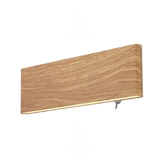 Fa kinézetű, vékony kivitelű alumínium fali lámpa alul felül opálos akril betéttel, 12W meleg fehér fényű beépített LED fényforrással, lámpatesten lévő kapcsolóval.