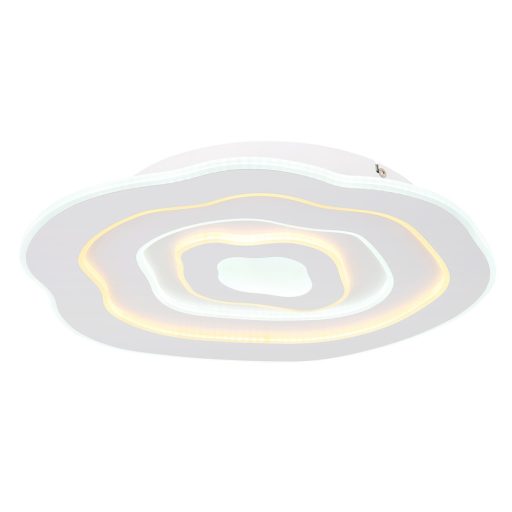 Fehér színű fém mennyezeti lámpa opálos acryl betétes búrával, beépített kevert, meleg és hideg (3000K+6500K) fehér színhőmérsékletű LED fényforrással.
