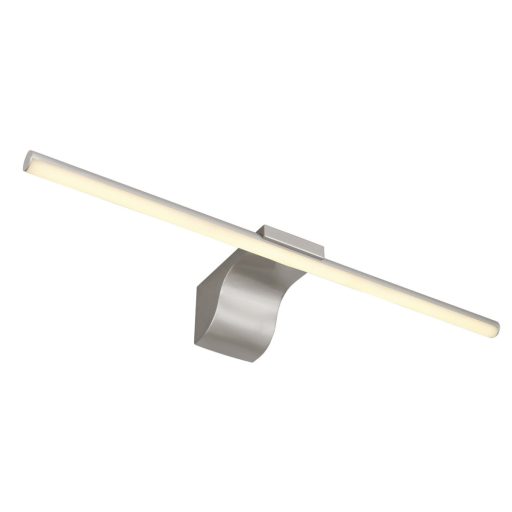 Matt nikkel színű fém vázas fali lámpa opálos acryl betéttel, beépített természetes fehér színhőmérsékletű LED fényforrással, IP44-es védelemmel.