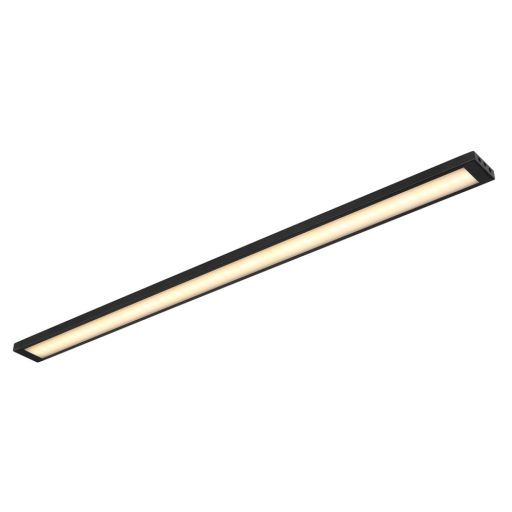 Fekete-fehér színű műanyag pultvilágító lámpa beépített, meleg fehér színhőmérsékletű LED fényforrással, billenőkapcsolóval a kábelen, adapterrel, 3M fóliával a ragasztáshoz, vagy csavarokkal a rögzítéshez.