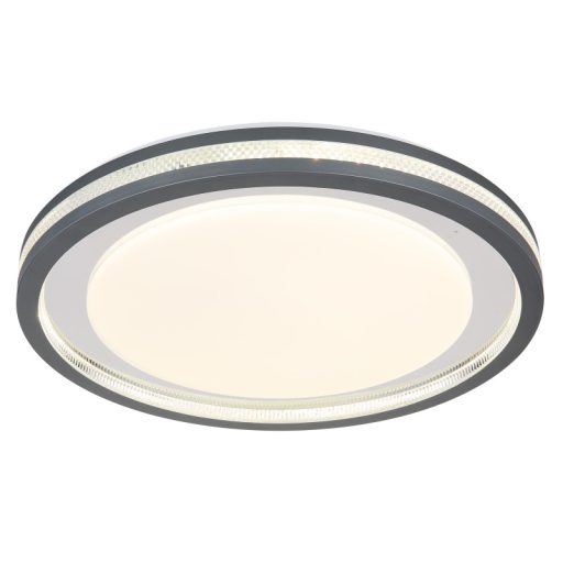 Mennyezeti lámpa fém fehér,műanyag szürke/krómozott,akril opál/átlátszó,kristály, dimmelhető, színek rögzíthetők, memória funkció, éjszakai fény, tartozék:2x AAA , ø: 478mm, M: 67mm, LED 30W 230V, 400-3600lm forrás, 200-1700lm kimenet,CCT 2700-6500K.
