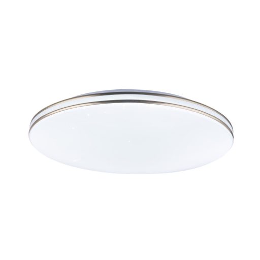 Kerek mennyezeti lámpa fehér színű fém vázzal, króm betétes műanyag búrával, beépített LED fényforrással. A lámpához távirányító tartozik, mely segítségével állítható a lámpa fényereje és színhőmérséklete (3000-6500K között), lletve a lámpa éjszakai fény funkcióval is rendelkezik.