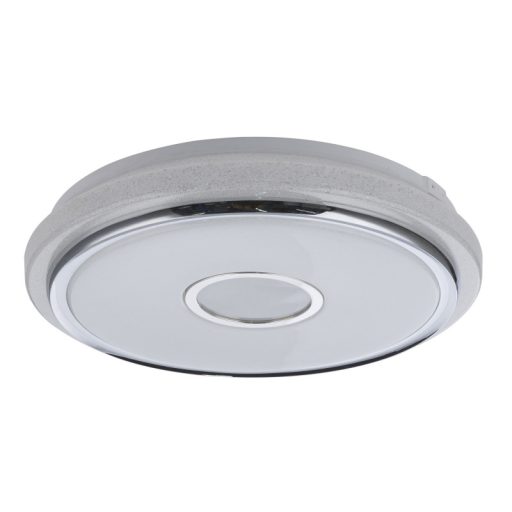 Kerek mennyezeti lámpa fehér színű fém vázzal, króm gyűrű dekorral, K9 kristály díszítéses, csillagos égbolt effektes, opálos műanyag búrával, beépített LED fényforrással. A lámpához távirányító tartozik, mely segítségével állítható a lámpa fényereje és színhőmérséklete (3000-6000K között), lletve a lámpa éjszakai fény funkcióval is rendelkezik.