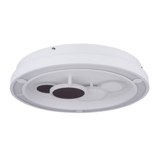 Dekoratív megjelenésű, mennyezeti lámpa fehér színű fém vázzal, barna dekoros és opálos akril búrával, beépített LED fényforrással. A lámpához távirányító tartozik, mely segítségével állítható a lámpa fényereje és színhőmérséklete (3000-6000K között).