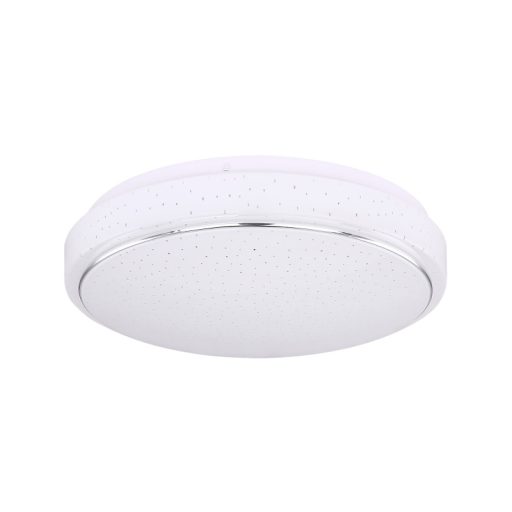 Csillagos égbolt effektes mennyezeti lámpa fehér színű fém vázzal, króm betétes műanyag búrával, beépített LED fényforrással.