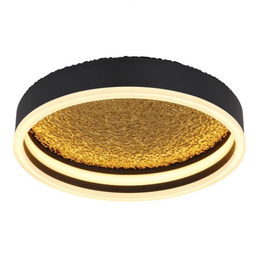 Arany és fekete színű fém vázas mennyezeti lámpa opálos akril búrával 24W meleg fehér színhőmérsékletű beépített LED fényforrással.
