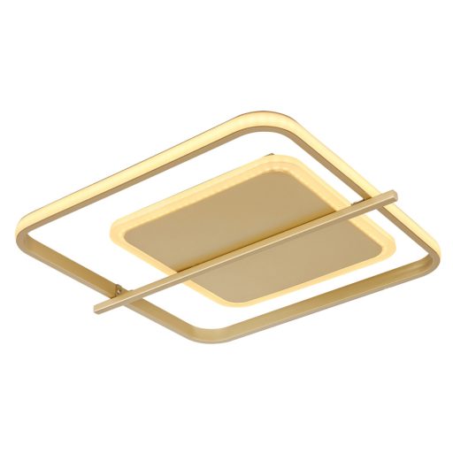 Arany színű fém és alumínium mennyezeti lámpa opálos műanyag betéttel, beépített meleg fehér színhőmérsékletű LED fényforrással.