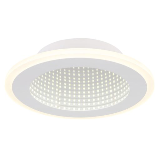 Mennyezeti lámpa fém fehér matt, műanyag tükrös 3D hatás, akril opál, ø: 225mm, M: 40mm, LED 12W 230V, 1500lm forrás, 750lm kimenet, 4000K