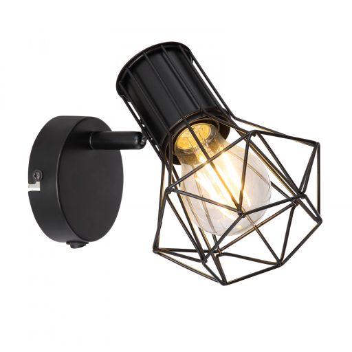 Fekete színű fém vázas spot lámpa drótháló búrával, a lámpatesten kapcsolóval. A lámpa dekor fényforrással mutat a legjobban, ami nem tartozék.