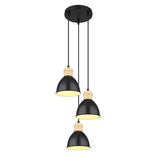 Fekete színű fém vázas függeszték fa kinézetű fém dekorral, kívül fekete, belül fehér színű fém búrával. A lámpa E27-es foglalattal rendelkezik, fényforrást nem tartalmaz.