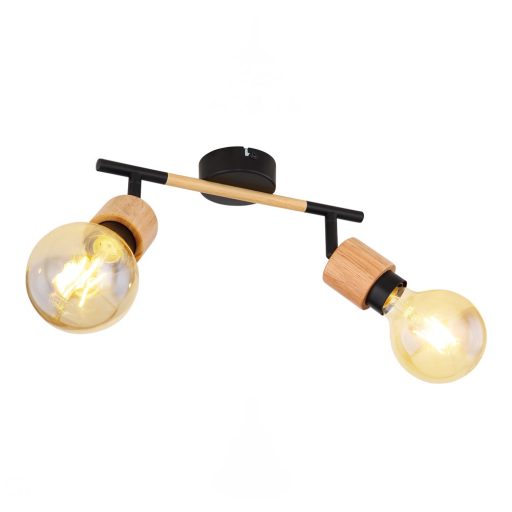 Matt fekete színű fém vázas, világos fa dekoros spot lámpa, mozgatható E27-es foglalattal. Dekor, vagy filament LED fényforrással mutat a legjobban, ami nem tartozék.