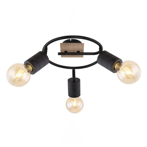 Matt fekete színű fém vázas, világos fa dekoros spot lámpa, mozgatható E27-es foglalattal. Dekor, vagy filament LED fényforrással mutat a legjobban, ami nem tartozék.