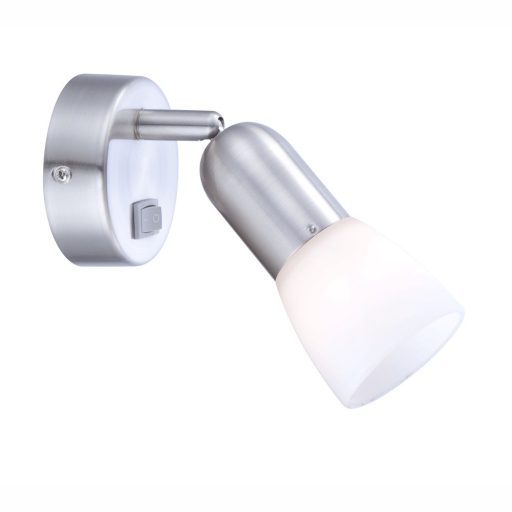 Matt nikkel színű fém vázas spot lámpa opál üveg búrával, lámpatesten kapcsolóval, állítható fejjel.