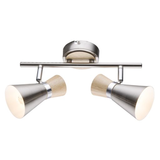 Matt nikkel színű fém spot lámpa fa betétes, nikkel színű búrával.
