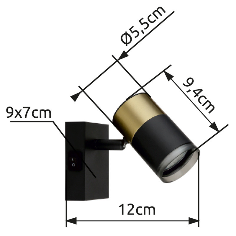 Spotlámpa fém fekete matt, alumínium réz matt, alumínium fekete matt, füstszínű műanyag, billenőkapcsoló a terméken, SzxM: 70x90mm, Mélység: 120mm, 1x GU10 25W 230V izzó nélkül
