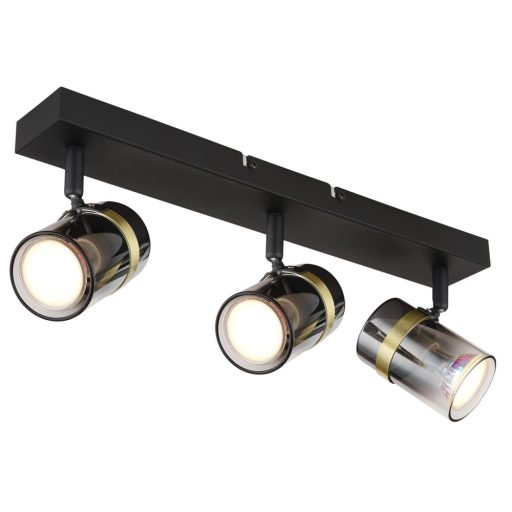 Fekete színű fém spotlámpa sárgaréz dekoros, füstszínű üveg búrával, GU10-es foglalattal.