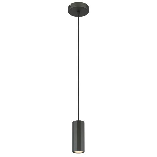 Függeszték fém szürke matt, alumínium szürke matt, kábel PVC fekete, magassága lerövidíthető, ø: 100mm, M: 1200mm, 1x GU10 25W 230V izzó nélkül