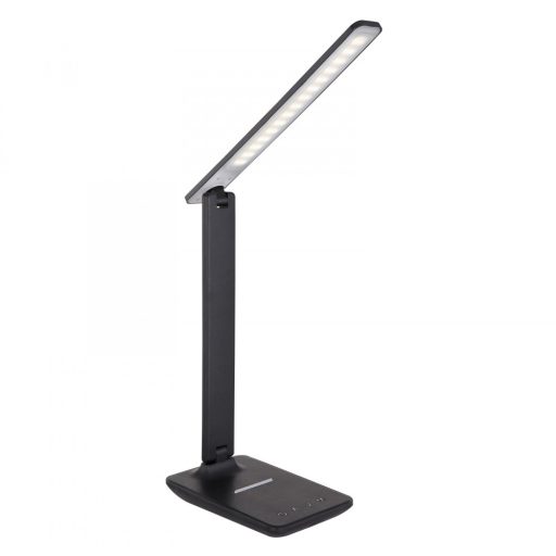 Fekete színű bőr hatású, műanyag íróasztali lámpa, beépített LED fényforrással. A lámpa érintőkapcsolóval rendelkezik,melynek segítségével állítható a fényereje és színhőmérsékelte (3000-6000K között).