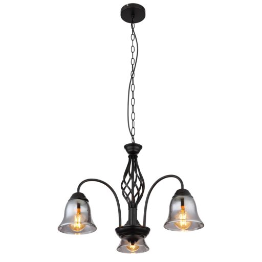 Fekete színű fém csillár füstszínű üveg búrával, E27-es foglalattal.