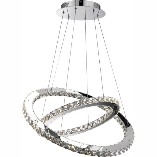 Fényűző és csillogó függeszték króm színű fém vázzal és dönthető, gyűrű alakú K9 kristály dekoros búrával, beépített LED fényforrással.