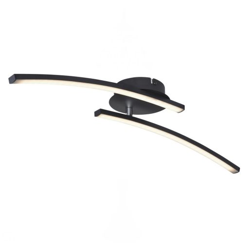 Design mennyezeti lámpa matt fekete színű fém vázzal, opálos műanyag betétes búrával, 12W beépített LED fényforrással, forgatható karral. A lámpa színhőmérsékelte fali kapcsoló segítségével állítható 3000-4000-6000K között.