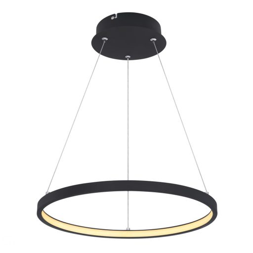 Design függeszték lámpa matt fekete színű fém vázzal, opálos műanyag betétes búrával, 19W meleg fehér színhőmérsékletű beépített LED fényforrással.