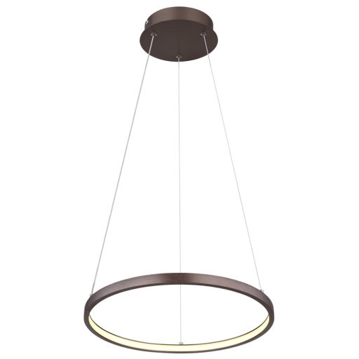 Kávébarna színű fém függeszték opálos műanyag betéttel, beépített meleg fehér színhőmérsékletű LED fényforrással.