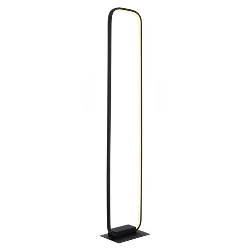 Design álló lámpa matt fekete színű fém talppal, matt fekekte színű alumínium és opálos akril búrával, 24W meleg fehér színhőmérsékletű beépített LED fényforrással, vezetékre szerelt kapcsolóval.