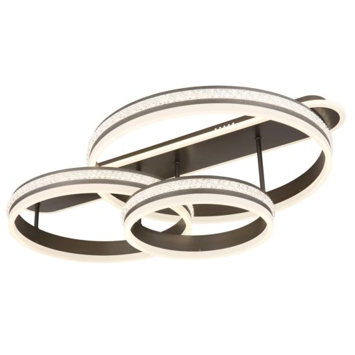 Szálcsiszolt alumínium, titán színű mennyezeti lámpa, átlátszó akril kristály dekorral, beépített LED fényforrással. A lámpához távirányító tartozik, mely segítségével állítható a lámpa fényereje, színhőmérséklete (2700K-6000K), továbbá a lámpa memória és éjszakai fény funkcióval is rendelkezik.