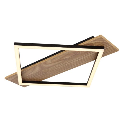 Mennyezeti lámpa, matt fekete fém, sötét fa mintázatú MDF, matt fekete műanyag, fehér műanyag, HxSzxM: 520x467x60mm, tartozék LED 18W 230V, 1850lm forrás, 950lm kimenet, 3000K