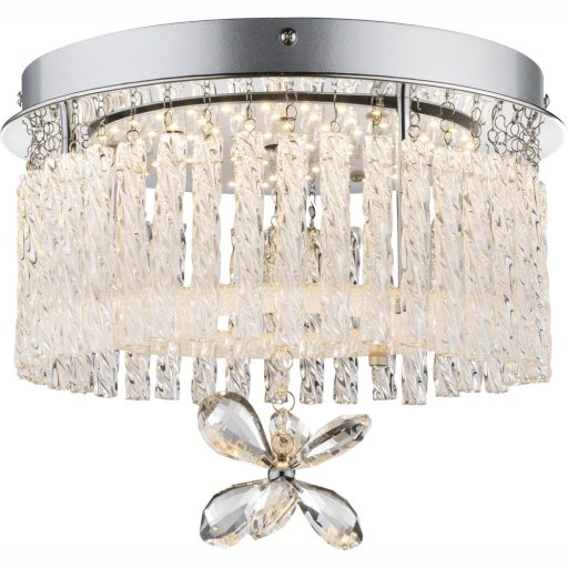 Króm színű fém vázas mennyezeti lámpa, virág és K9 kristály dekoros búrával, beépített LED fényforrással.