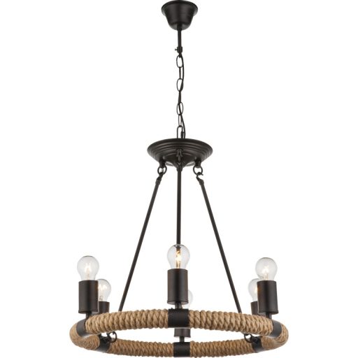 Vintage stílusú függeszték lámpa fekete színű fém vázzal, kenderkötél dekorral, fekete színű fém foglalattal. A lámpa dekor fényforrással mutat a legjobban, ami nem tartozék.