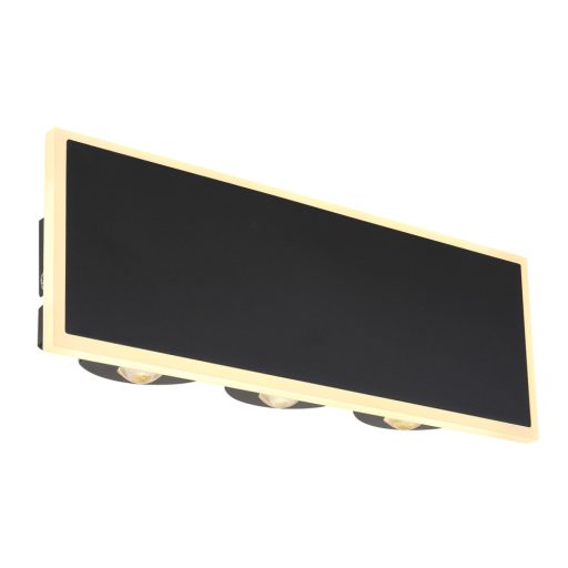 Matt fekete színű fém vázas fali lámpa műanyag betéttel, indirekt, dekor világítással, beépített meleg fehér színhőmérsékletű LED fényforrással.