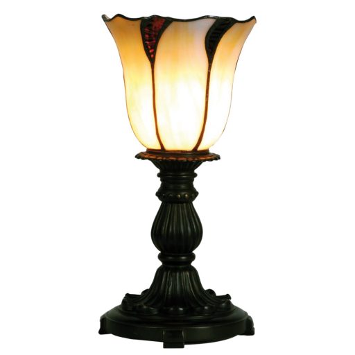 Bronz színű polyresin vázas Tiffany asztali lámpa Tiffany üveg búrával.