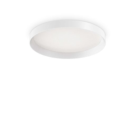 Fehér színű alumínium vázas mennyezeti lámpa fehér színű műanyag búrával, természetes fehér színhőmérsékletű beépített LED fényforrással, IP40-es védelemmel. A lámpához külön kapható kiegészítő felső világítás, több féle dimmelhető vezérlés és függesztő egység, mely segítségével függesztékké alakítható.