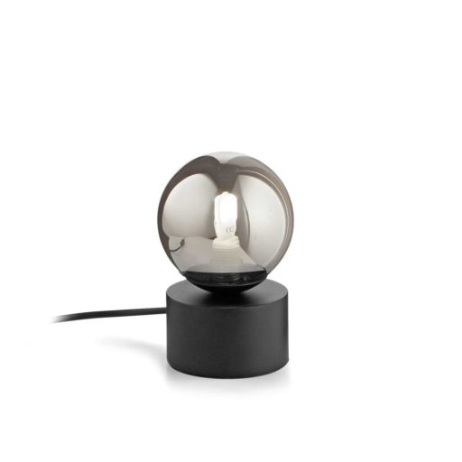 Fekete színű fém vázas éjjeli lámpa füstszínű üveg búrával, G9-es foglalattal. A lámpa egyéb tulajdonságai: vezetékre szerelt kapcsoló. 4W 3000K színhőmérsékletű G9-es LED fényforrással szállítjuk.