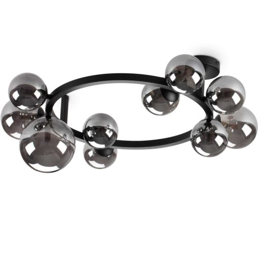 Fekete színű fém vázas mennyezeti lámpa füstszínű üveg búrával, G9-es foglalattal.